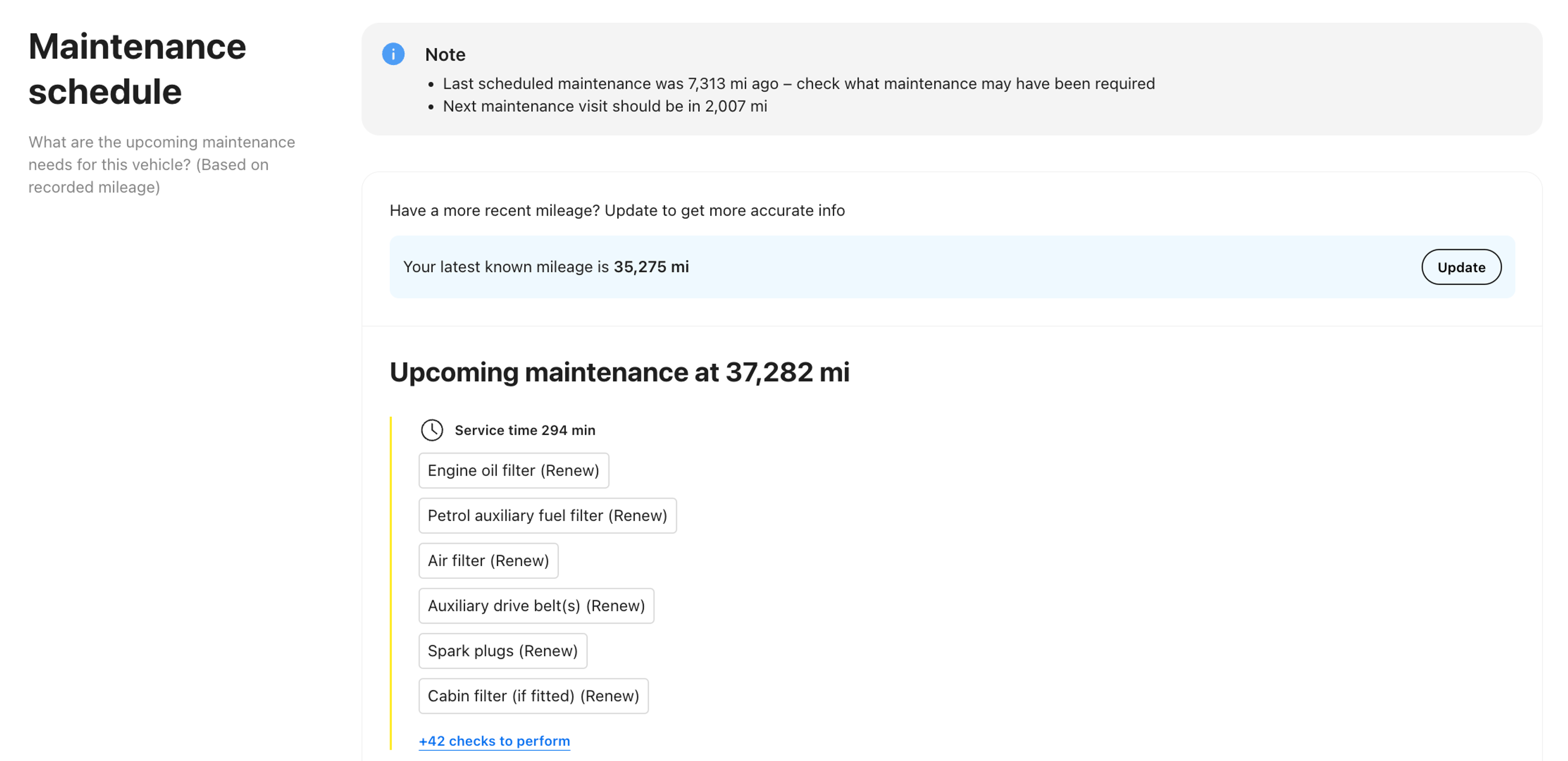 Even for experienced car owners, proper maintenance can be a hard nut to crack (not to mention those who have just gotten their driver's license). That’s why we decided to help car owners with maintenance planning and introduced a new section called Maintenance schedule.