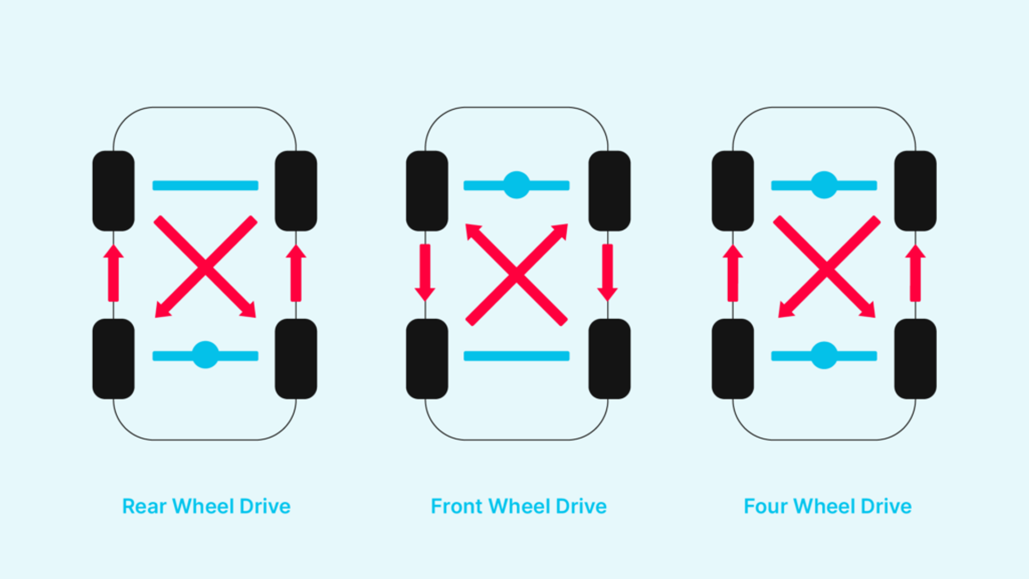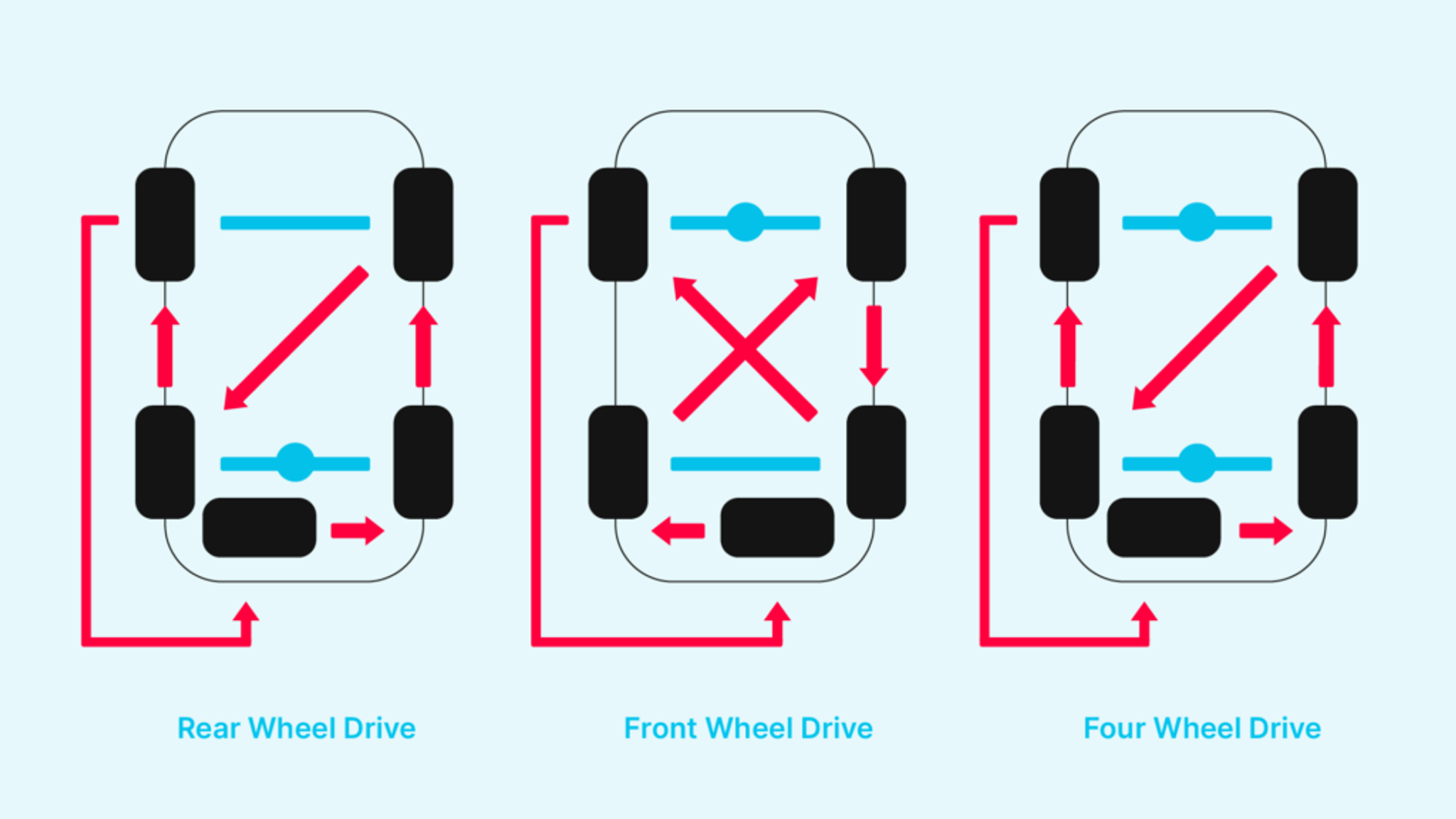 Since the rear end of a car is usually lighter than the front, the tire rotation pattern for AWD, 4WD, and 4X4 drivetrains is the same as for RWD cars – move the rear wheels to the front directly, and front wheels to the rear diagonally.