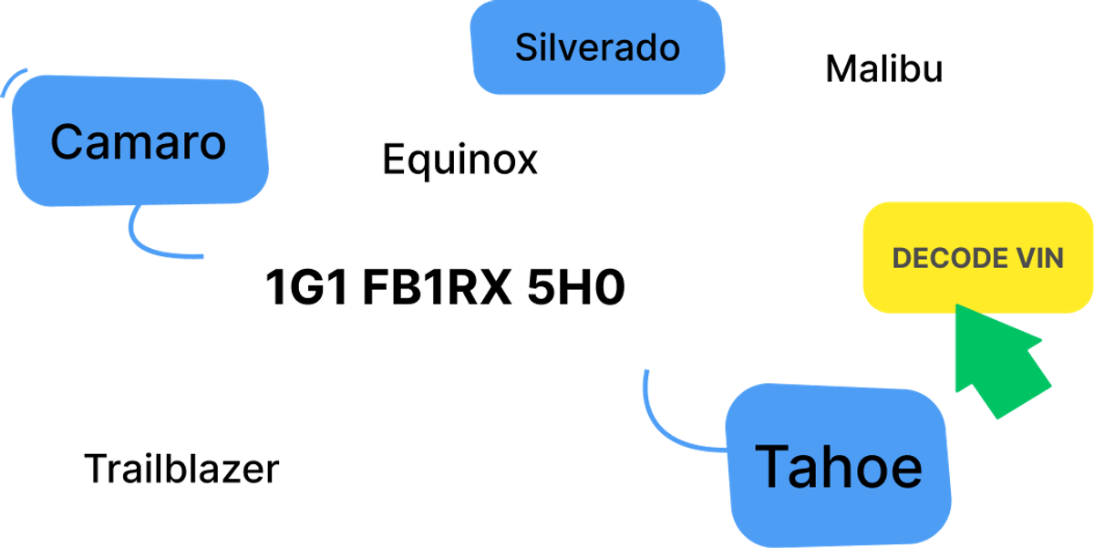 Our free Chevrolet VIN number decoder can decipher practically all modern models. This includes Chevrolet Spark, Trax, Trailblazer, Equinox, Tahoe, Suburban, Colorado and Silverado.