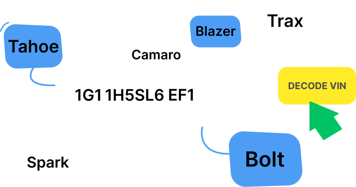 Our Chevrolet VIN decoder can decipher practically all modern models. This includes Chevrolet Spark, Trax, Trailblazer, Equinox, Tahoe, Suburban, Colorado and Silverado.